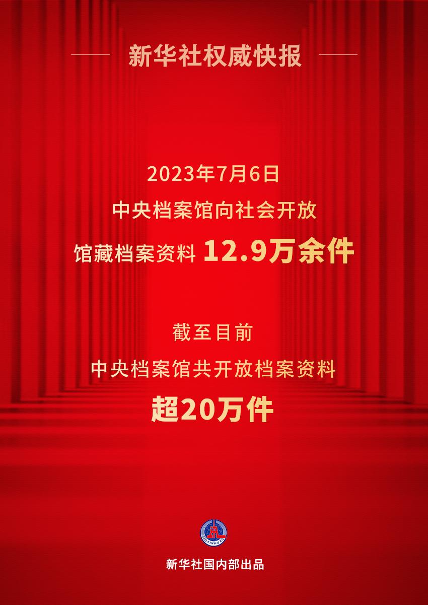 记者从国家档案局获悉,7月6日,中央档案馆向社会集中开放12.9万余件馆藏档案资料。这是中央档案馆向社会集中开放的第四批馆藏档案资料,截至目前,中央档案馆共开放档案资料超20万件。