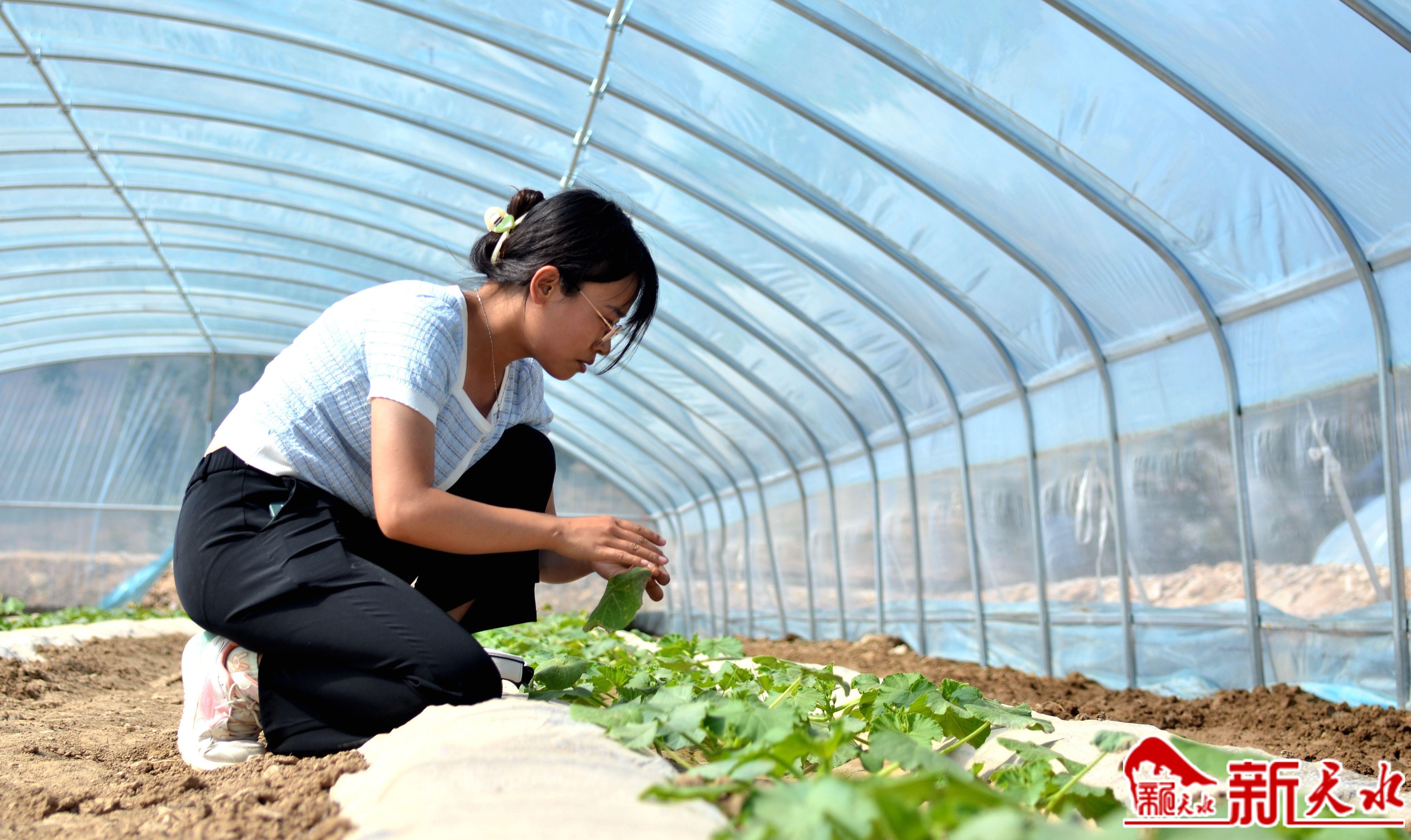7月5日,农户正在大棚里为南瓜疏苗和锄草。今年5月,甘谷县磐安镇刘家墩村争取中央“三部委”扶持壮大村集体项目资金50万元,依托村级股份经济合作社,将占地65亩的闲置砖厂进行平整和改造。按照“党支部+合作社+公司+基地”的发展模式,与平凉新丰园农业科技有限公司合作,引进新品种、新技术,发展种植贝贝南瓜,并由公司提供产品种子、技术及产品回收,形成产销一体化。