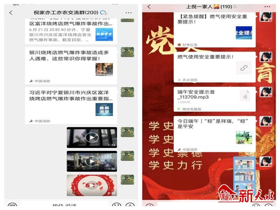 新天水讯 日前,清水县红堡镇倪徐村开展居家燃气安全隐患排查及宣传“敲门”行动,同时借助微信群科普燃气安全常识,推送安全事故警示教育片,进一步提升群众的燃气安全防范意识。