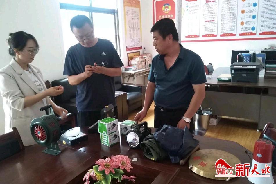 保障人力物资,提升应急水平。整合全镇应急人力、物资,充分利用志愿服务队力量,广泛发动、自愿参与,组建防汛抢险队伍,通过演练提高队伍应急抢险能力。截至目前,组建防汛抢险队伍19支,开展应急演练19场次,储备应急小喇叭、铜锣、锄头、铲子、雨衣、雨鞋、手电、编织袋等防汛应急物资20 余种,确保防汛应急物资供应充足。