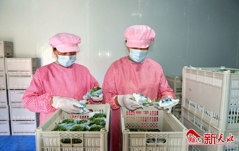 7月11日,农户正在加工车间分拣装箱野菜。去年4月份,秦州区秦岭镇白集寨村发挥党支部领办作用,利用废弃校舍,建成野菜加工厂,今年采收当地苦苣、乌龙头、五叶尖、椒芽、香椿等时令野菜5吨左右,通过线上线下销售,预计实现销售收入12万元以上,为壮大村集体经济拓宽了增收渠道。 新天水记者 张文都 摄