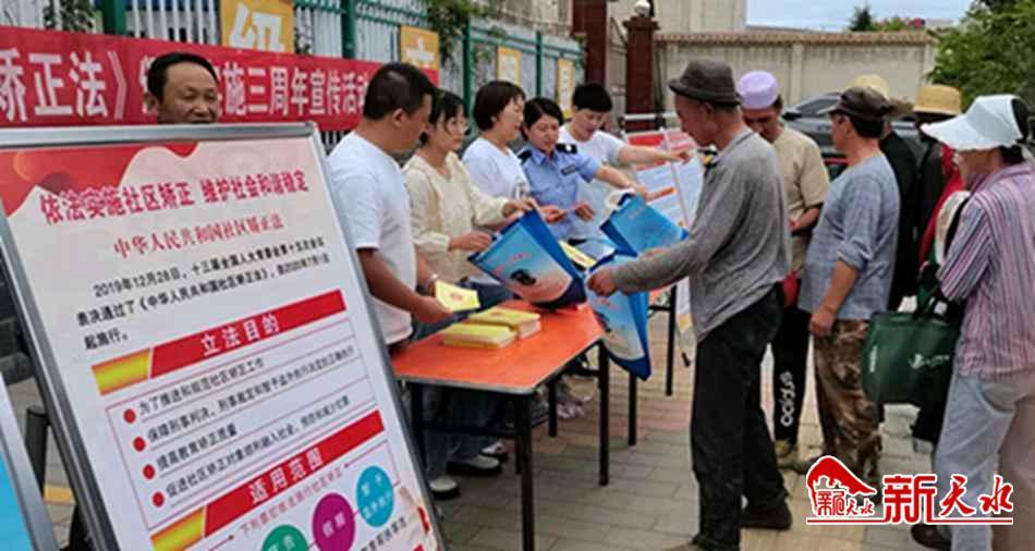 新天水讯 为深入宣传贯彻《中华人民共和国社区矫正法》,提升群众尊法、信法、守法、用法、护法的法治意识,近日,张家川县司法局组织律师、公证员、法律服务工作者在新农贸市场开展《中华人民共和国社区矫正法》颁布实施三周年主题宣传活动。