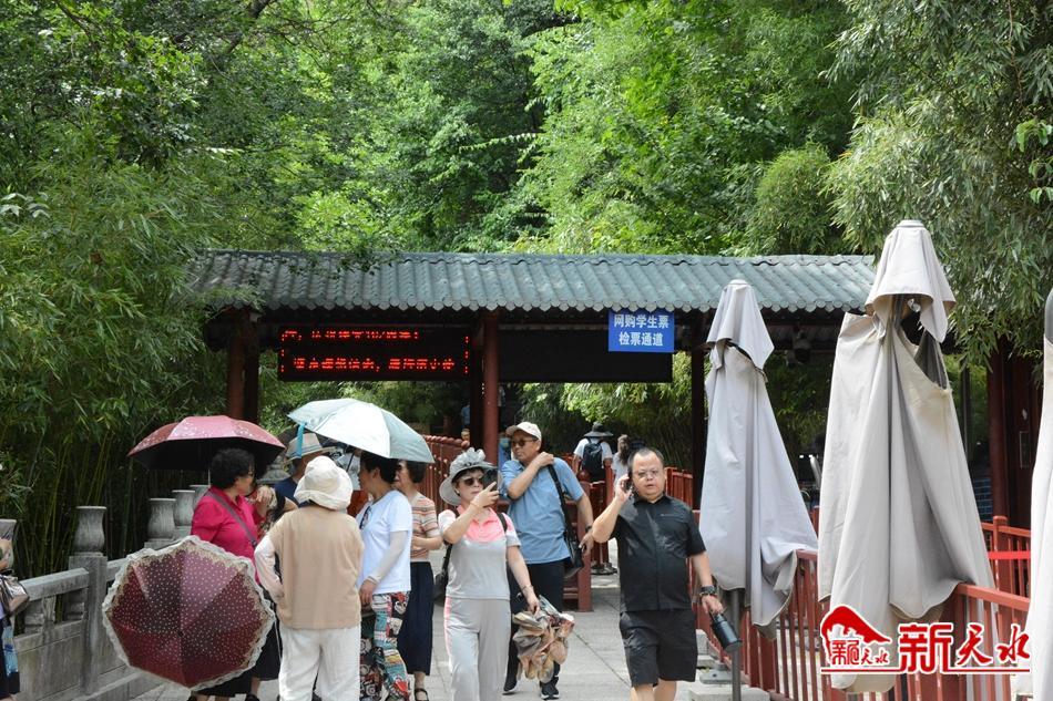 7月14日,麦积山石窟景区游人如织,有的排队等待买票,有的在广场拍照留念,有的依次参观游览,一派热闹景象。