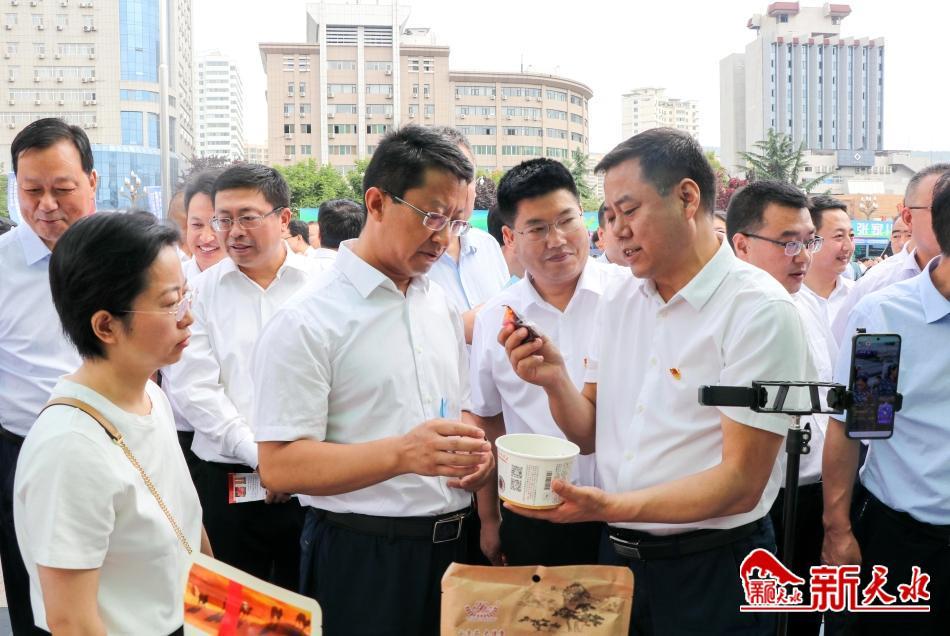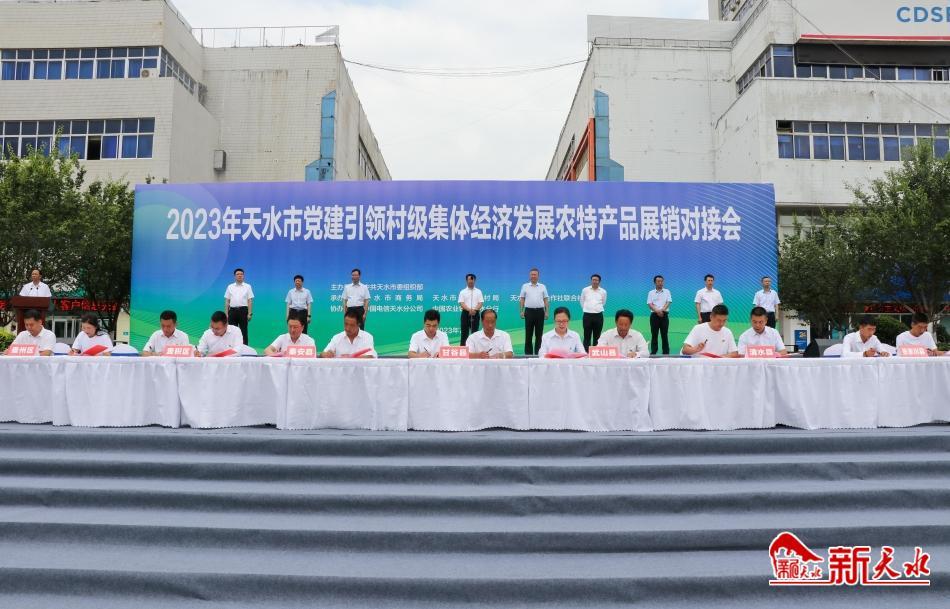 新天水讯【记者王琴】为客观反映全市抓党建促乡村振兴工作成效,集中展示宣传村级集体经济发展成果,7月19日,2023年天水市党建引领村级集体经济发展农特产品展销对接会启动仪式在秦州区龙城广场举行。市委常委、组织部部长张晓强,市人大常委会副主任何晓斌,市政协副主席杨铁森出席启动仪式。副市长康泰来主持仪式,28家采购方、供货方代表进行了现场签约。