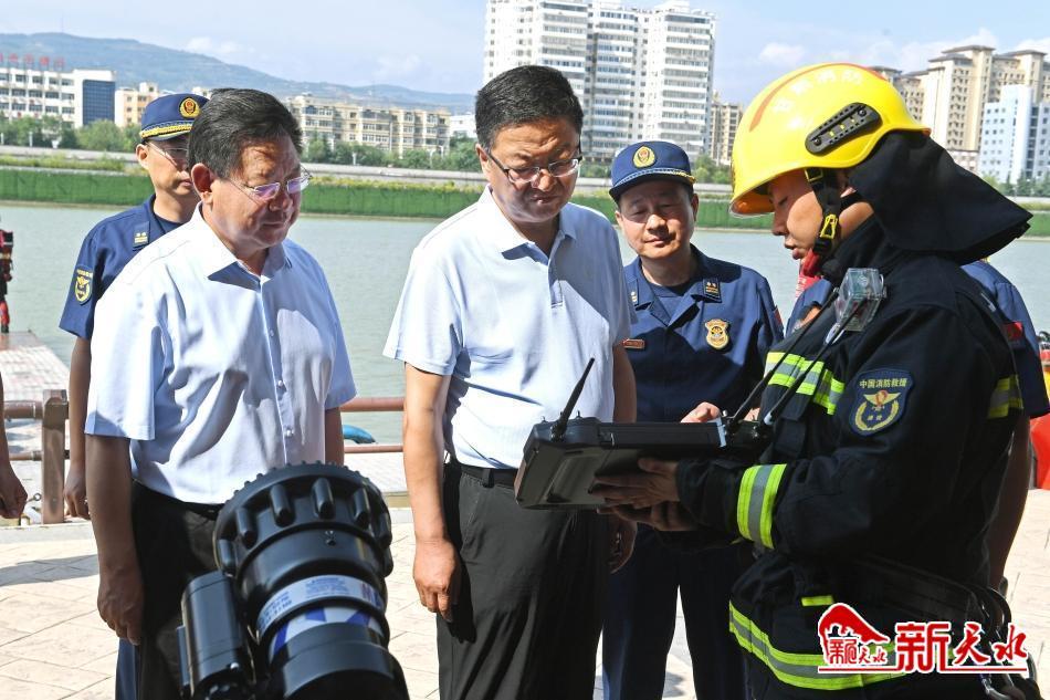 在麦积区翠湖公园水上消防救援实训点,冯文戈观看了水上救援应急演练,实地察看消防车辆及装备器材配备情况。他说,哪里有危险,哪里就有消防战士;哪里群众有需求,哪里就有消防战士。消防战士为保障我市经济社会发展和保护人民生命财产安全作出了巨大努力,市委、市政府将一如既往关心和支持消防事业发展,加强消防基础设施建设,不断推动消防救援工作取得新成效。希望大家继续发扬“对党忠诚、纪律严明、赴汤蹈火、竭诚为民”的优良传统和过硬作风,立足实战、严格训练,全面提高防灾减灾救灾和安全生产保障水平,为天水经济社会发展大局、百姓安居乐业保驾护航。冯文戈一再叮嘱大家,在做好训练和救灾的同时,一定要做好防护工作,确保自身安全。