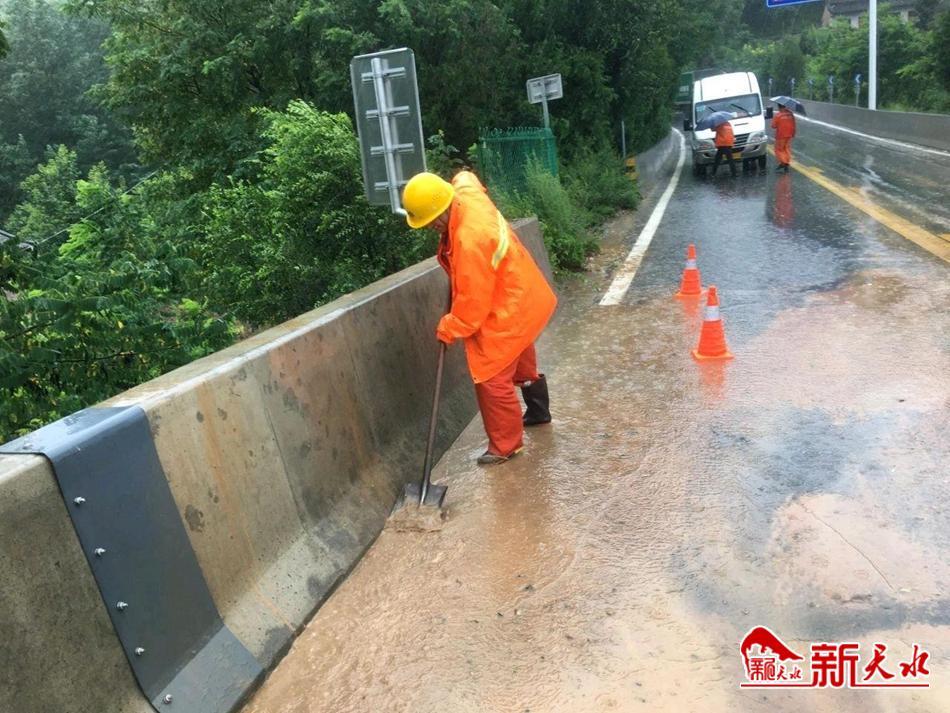 新天水讯【通讯员陈丽星】7月27日,受强降雨天气影响,天水市部分公路出现落石、积水等现象,给群众安全出行带来不便。秦州公路段段以“雨”为令,闻“汛”而动,强排查、重养护,有效应对因极端天气引发的道路安全隐患,全力保障公路安全畅通。