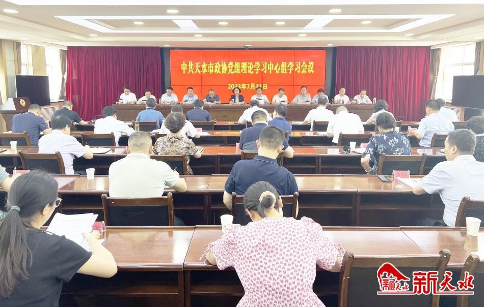 新天水讯【记者马哲】7月31日,天水市政协党组书记、主席王燕主持召开市政协党组理论学习中心组学习会。市政协党组副书记、副主席马勤学,党组成员、副主席马筱宁、吴立新、崔玉军,党组成员、秘书长董小明,党组成员贾忠慧出席会议,副主席何宝平、杨铁森、罗增芳、范多智,一级巡视员郭明兴列席会议。