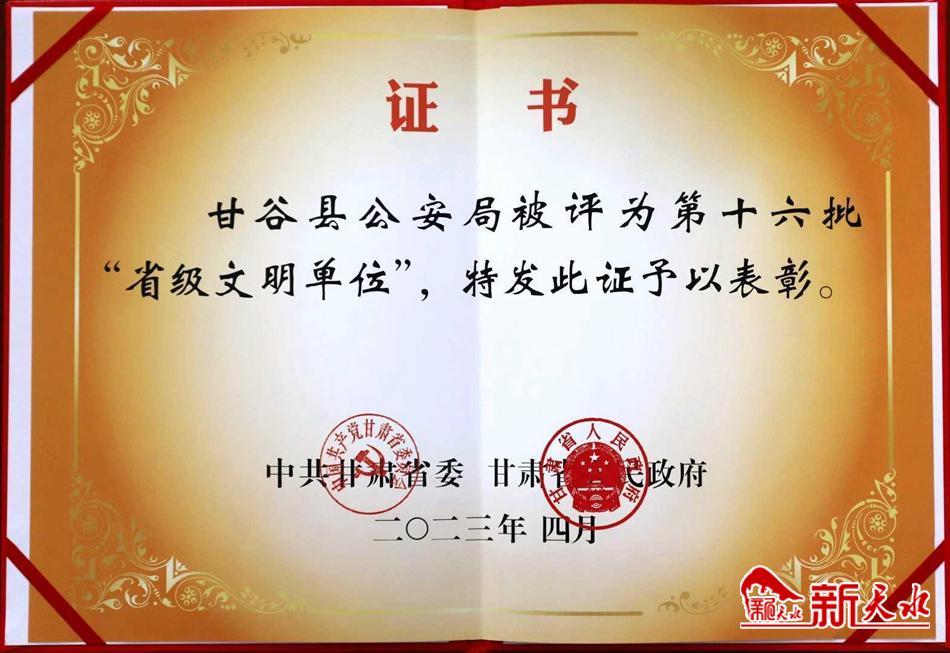 甘谷县公安局主要领导表示,获得“甘肃省文明单位”荣誉称号是甘谷公安精神文明建设的又一个成果,既是新的荣誉,又是新的起点,甘谷公安将进一步发挥好“全省文明单位”的示范引领作用,紧抓主责主业,大力培育文明沃土。践行服务宗旨,尽情绽放文明之花。选树先进典型,不断引领文明新风尚,继续提高单位整体文明程度,打造甘谷公安崭新形象,推动工作提档升级,为全县经济发展和社会稳定做出更大贡献。(马彦龙)