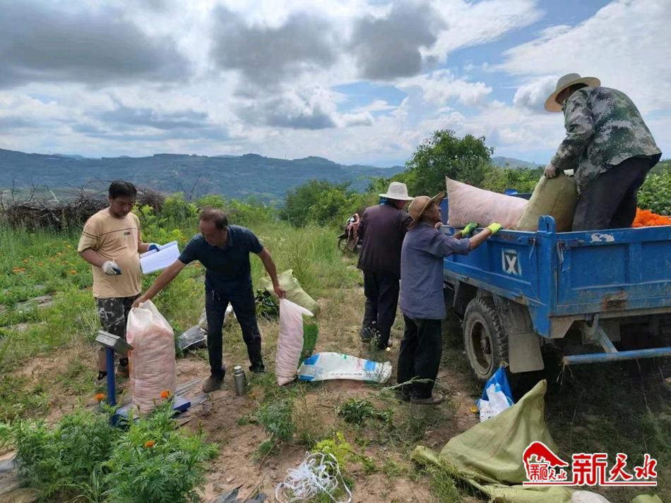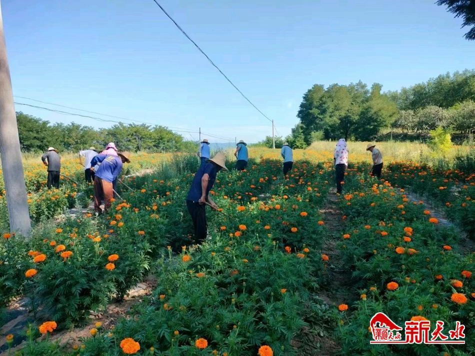 新天水讯 炎炎夏日,清水县丰望乡万寿菊采摘工作正在有序进行。该乡党员干部顶着高温穿梭在万寿菊种植基地,目之所及,都是党员干部除草、施肥、采摘的火热现场。