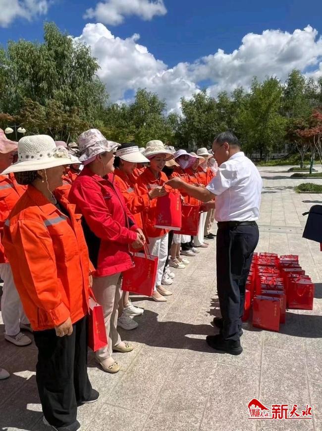 张家川县四大班子分管领导带队分别慰问了交警、公安民警、环卫工人、重大项目等一线工作人员,为他们送去了茶叶、冰糖、饮料、西瓜等防暑物品。在西城区环卫所,县领导与环卫工人亲切交谈,仔细询问一线职工的工作和生活情况,并向一线环卫工人送上爱心礼包,强调环卫工作是城市管理的重要环节,广大环卫工人夏战酷暑、冬战严寒,起早贪黑、默默奉献,为张家川县城市发展作出了巨大贡献。希望广大环卫工人要继续发扬爱岗敬业精神,全力干好本职工作,为70周年县庆营造干净整洁的环境。