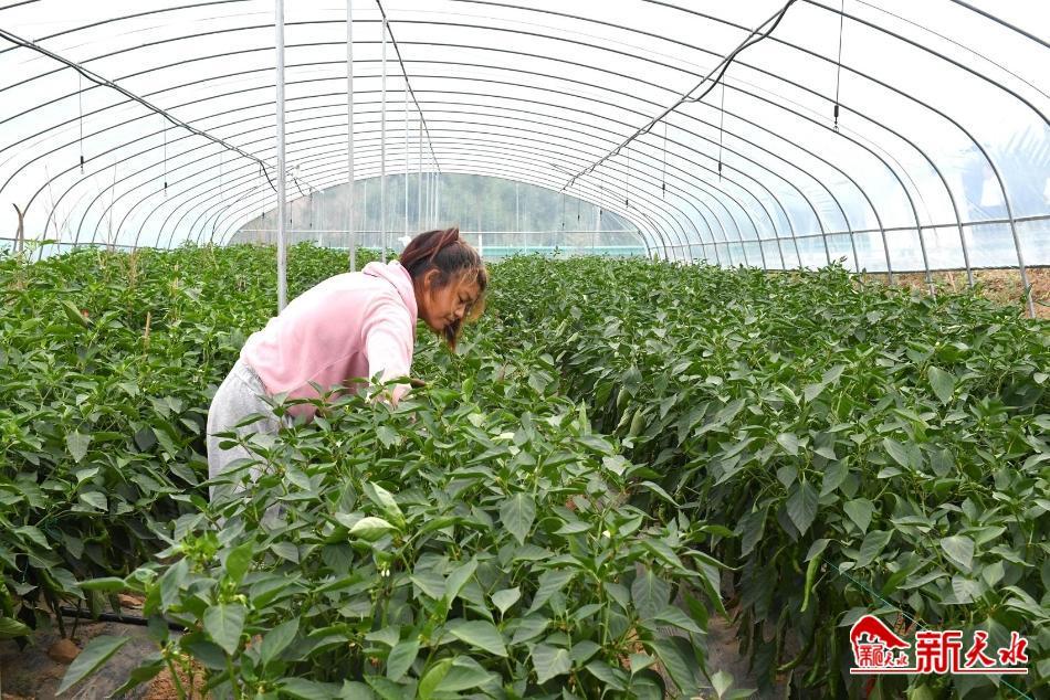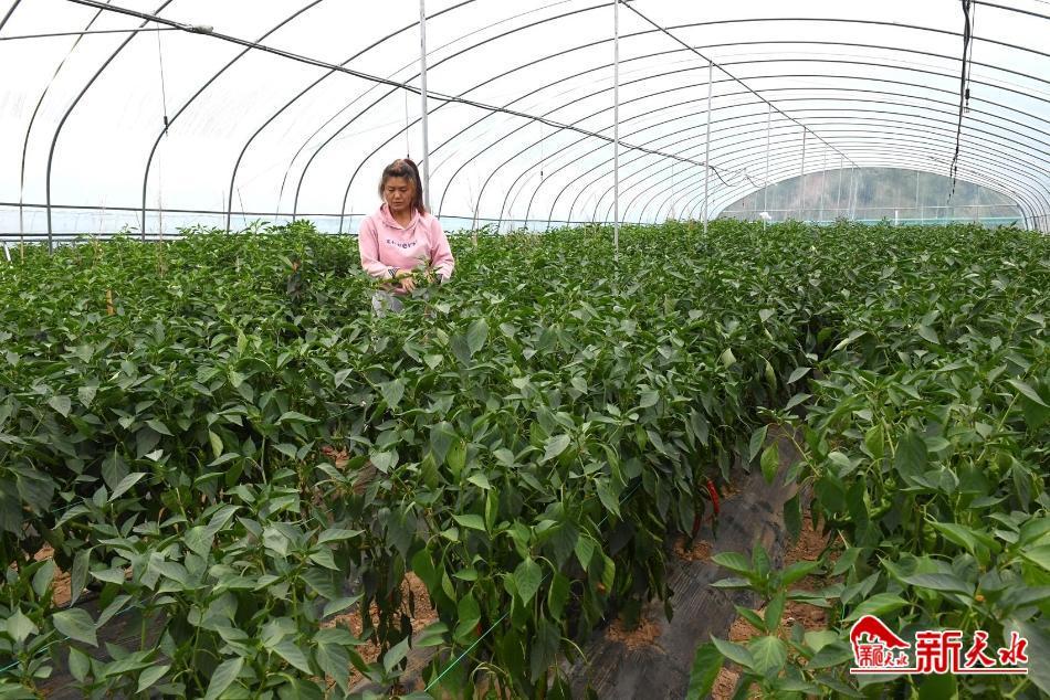 8月9日,秦安县王尹镇马河村循环农业示范基地工作人员采收辣椒。