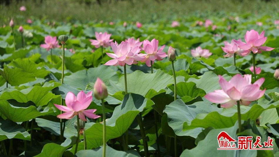 新天水讯【通讯员管秋勇 兰红红】接天莲叶无穷碧,映日荷花别样红。初秋时节,走进武山县鸳鸯镇盘古川村生态休闲田园综合体,一派绿意盎然的景象,亭亭玉立的荷花,葱绿的荷叶铺满水面,放眼望去,碧波微漾,荷花盛开的美景吸引了各地游客前来打卡拍照、野餐垂钓、网络直播,十分惬意。