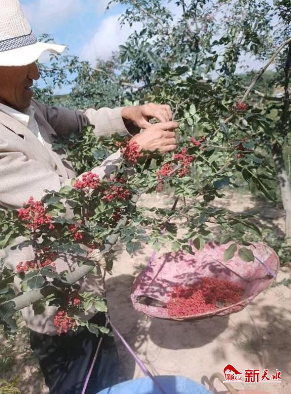 新天水讯 一抹红颜经天地,串串花椒挂树梢。今年,甘谷县西坪镇的万亩花椒迎来了大丰收,走进上硬王村,只见花椒树枝繁叶茂,椒香扑鼻,颇具诗景画意,一幅丰收的景象映入眼帘。