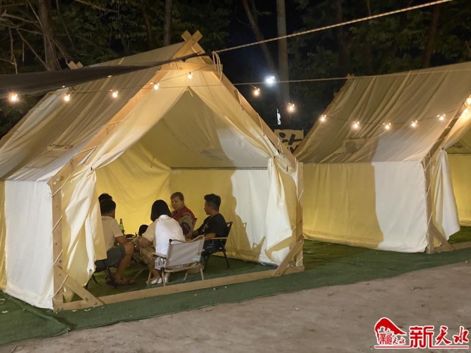 帐篷、天幕、折叠桌椅、氛围灯、火锅、烧烤、啤酒……微风拂动,绿树摇曳,三五成群的市民闲坐于帐篷内,边吃边喝边聊,惬意的露营时刻成了今年我市众多年轻人的首选。