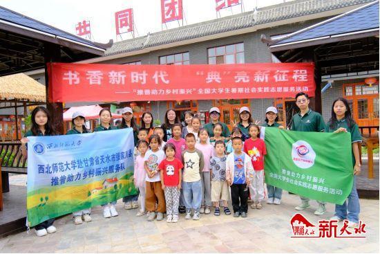 新天水讯 8月17日,张家川县马关镇组织西北师范大学推普助力乡村振兴服务队和青少年,开展优秀传统文化教育活动。