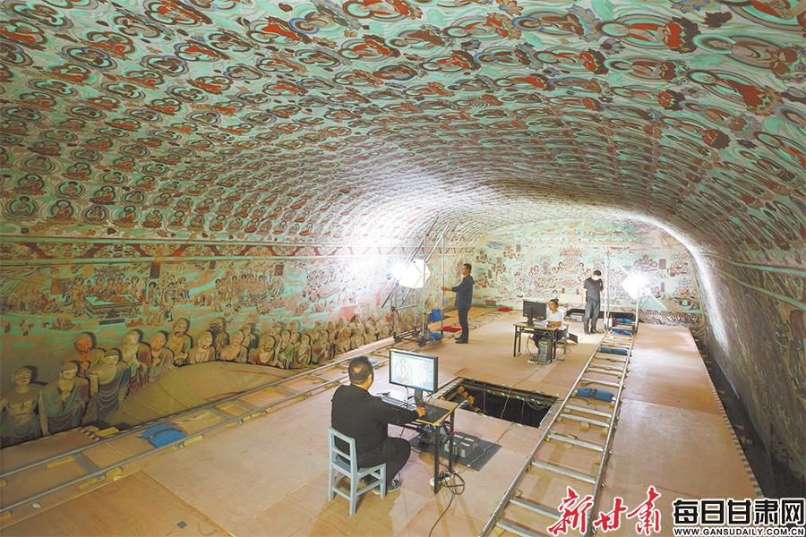 ▲文物保护工作者对洞窟进行数字化影像采集。
