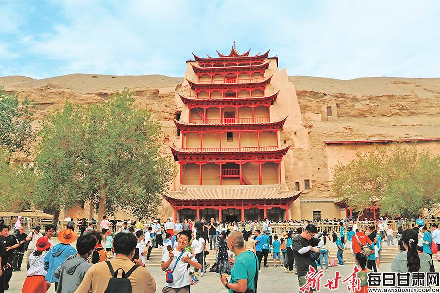 ▲8月9日,游客在敦煌莫高窟景区游览。新甘肃·甘肃日报通讯员张晓亮