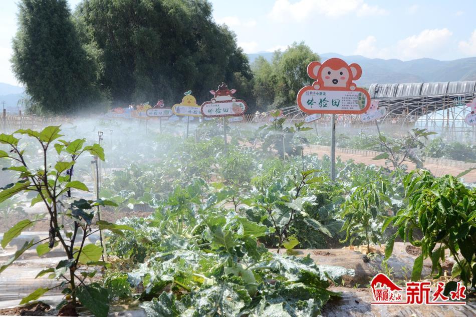8月17日,记者走进周庄村“农事体验园”看到,成片的菜地被一个个竖起的卡通动物头像插牌整齐划分成多块,每个插牌上标有姓名并附有蔬菜小知识,一垄垄拱起的地膜上,辣椒、茄子、黄瓜、菜花、生菜、莲花菜等时令蔬菜生长正旺,自动化浇水设备喷出一束束均匀的水雾,让“笼罩”在清凉中的蔬菜越发翠绿鲜嫩。三三两两的小家庭在自己的“一亩三分地”里,或查看蔬菜长势、或施肥、或采摘,享受着收获的快乐,体验着劳动带来的乐趣。