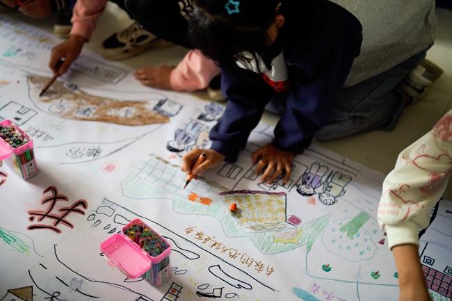 定西市陇西县东峪村“爱心陪伴”假期托管班中,孩子们正在进行绘画创作。甘肃省总工会供图