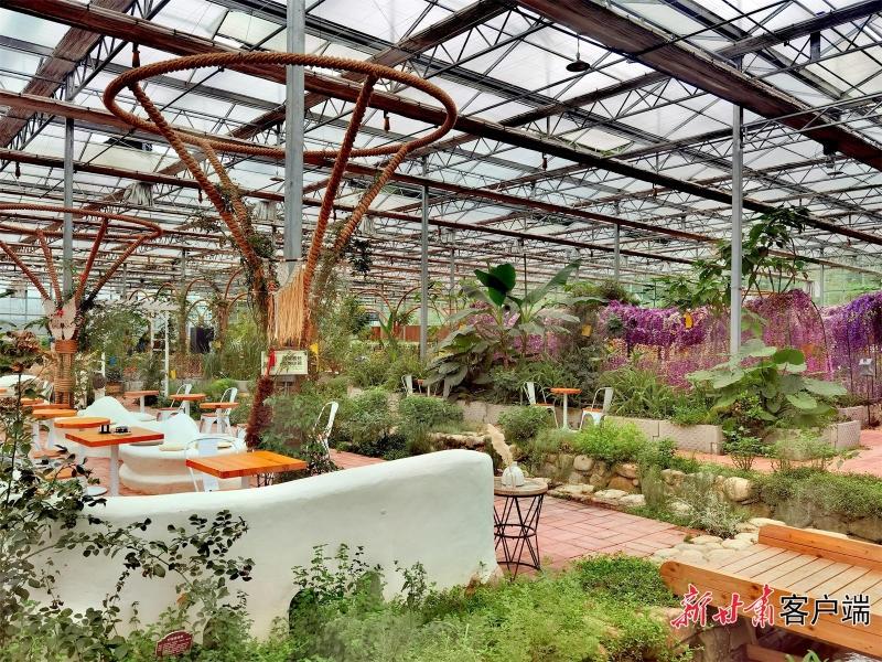 ▲平南特色小镇高标准智能温室大棚内的休闲区域。