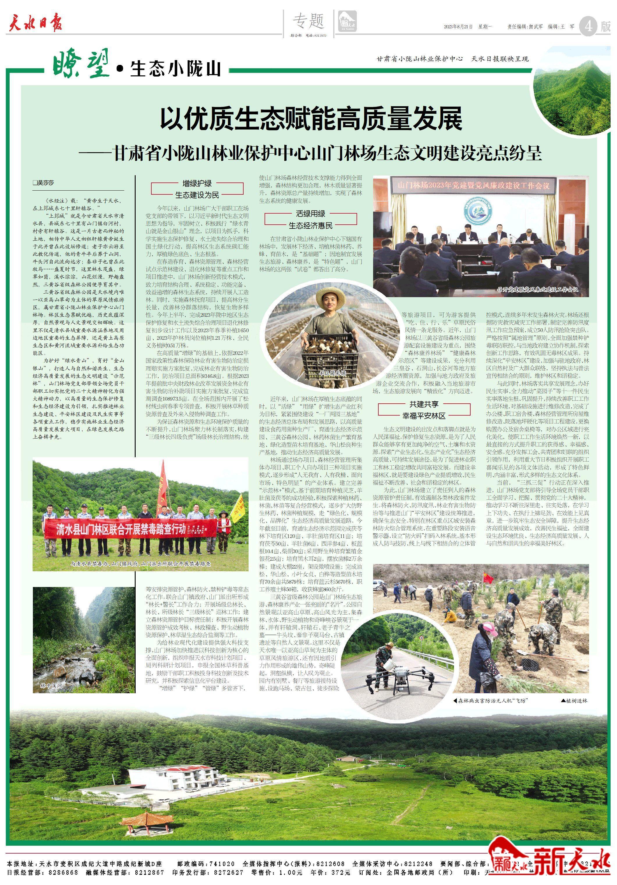 【瞭望·生态小陇山】以优质生态赋能高质量发展——甘肃省小陇山林业保护中心山门林场生态文明建设亮点纷呈