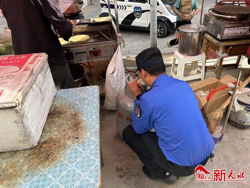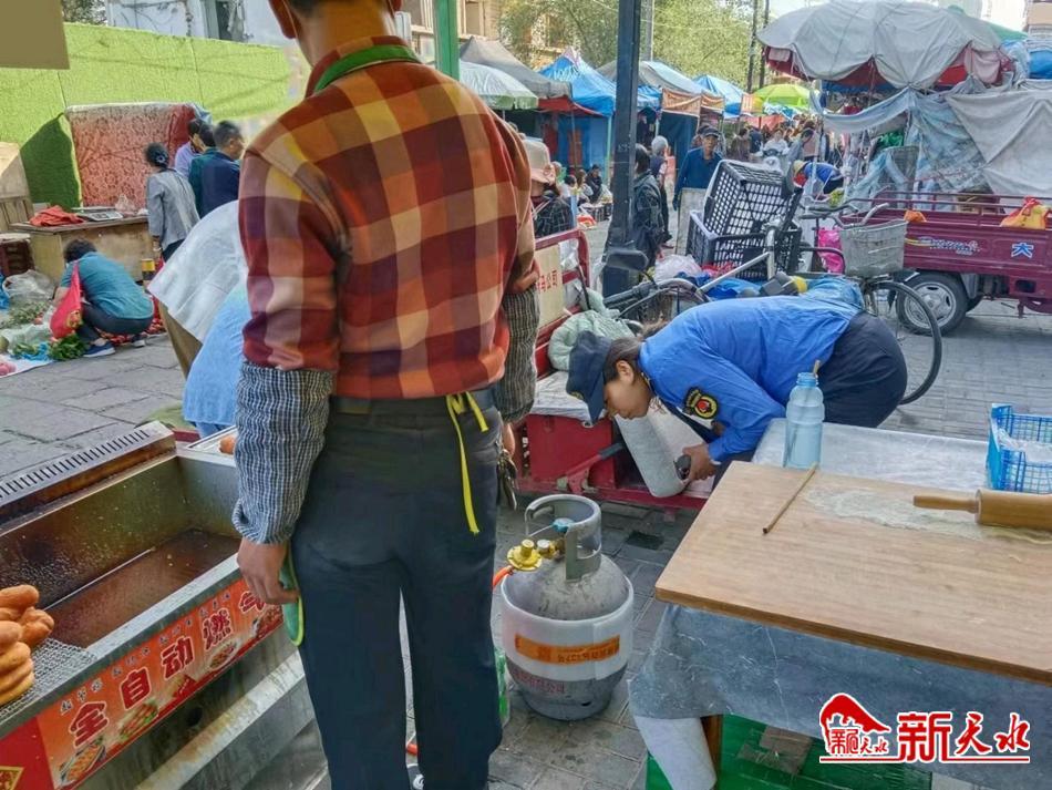 新天水讯【通讯员靳雪萍】8月29日,秦州区执法局玉泉中队对辖区内各早点市场、摊点的液化气罐使用情况开展集中检查,并向经营者普及燃气安全使用知识,保障商户用气安全,筑牢安全“防火墙”。