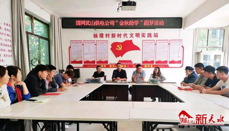 新天水讯 8月29日,武山县杨河镇杨楼村两委联合帮扶单位国网武山供电公司,开展“金秋助学”圆梦活动。