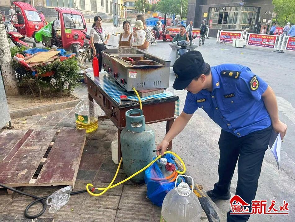 新天水讯【通讯员朱学勇】近日,秦州区执法局天水郡中队开展城市管理领域城区燃气安全隐患排查整治,确保辖区餐饮摊点安全经营无事故。