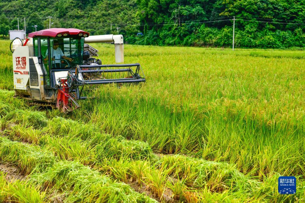 8月26日,农机手驾驶收割机在贵州省岑巩县羊桥土家族乡祝坝村收割制种水稻。初秋时节,贵州省岑巩县水稻制种迎来收获季,制种农户和加工企业抢抓晴好天气进行收割、装运、烘烤,确保水稻种子颗粒归仓。2023年,岑巩县实施水稻制种3.8万亩,预计可向市场提供水稻良种800余万公斤。新华社记者 杨文斌 摄