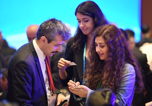 2019年9月10日,来宾在2019欧亚经济论坛现场交流。新华社记者 张博文 摄