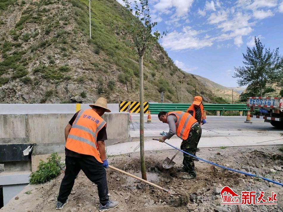 新天水讯【通讯员刘志伟】连日来,武山公路段精心组织,抢抓有利时机,对前期工程施工时移除的行道树、花草进行栽植、补植,美化交通环境。