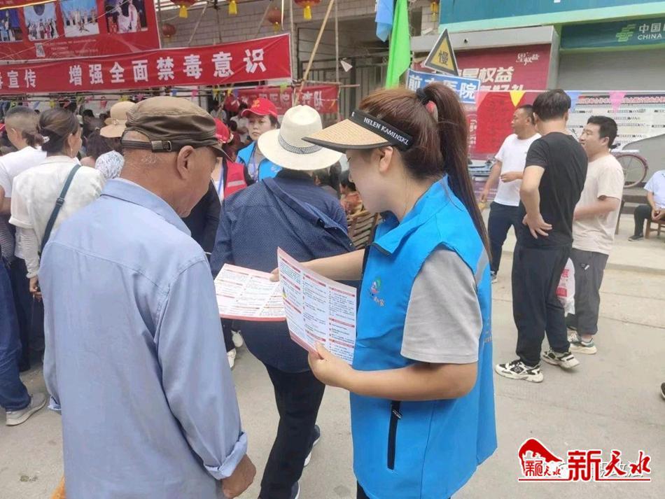 在庙会现场,网格员主动参与现场布置,卫生保洁,物资搬运,秩序维护、群众引导等工作。同时,充分发挥网格员职责、运用通俗易懂的语言,面对面、零距离地为十里八乡的群众宣传有关禁毒、扫黑除恶、移风易俗、电信诈骗、消防安全等知识,让法治宣传接地气、聚人气,进一步拉近了与群众的距离,获得了群众的一致认可。网格员共向群众发放各类宣传资料5000余份,现场接受群众咨询2000余人次,为群众发放饮用矿泉水30000余瓶。