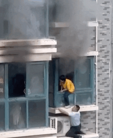 从窗外徒手爬到2楼夹层处