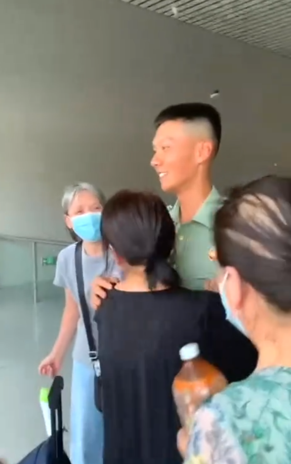 见到家人后,小伙先是微笑敬礼