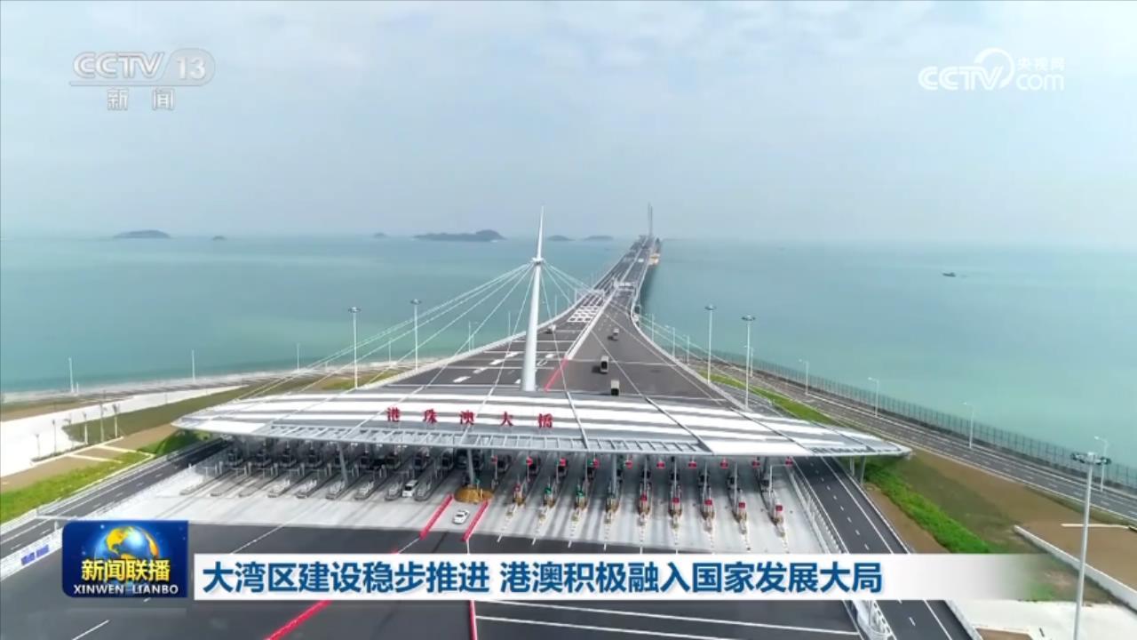 央视网消息(新闻联播):粤港澳大湾区建设稳步推进,香港、澳门积极融入国家发展大局。