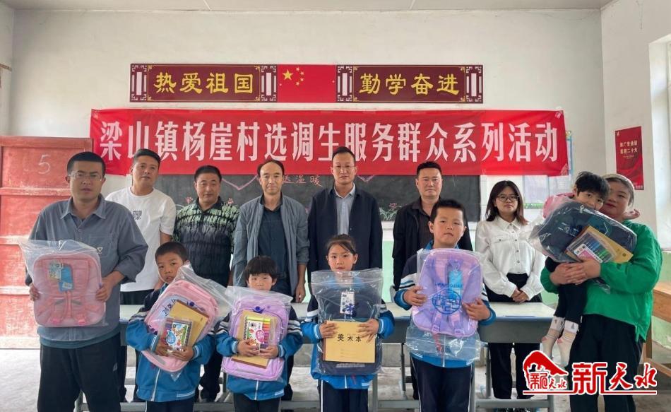 近日,在张家川县梁山镇杨崖村任职的选调生王丹,为杨崖村小学学生购买了书包、彩笔等学习用具,为孩子们献上自己的一份爱心。同时,向坚守在教学一线的杨崖村教师送去慰问品。
