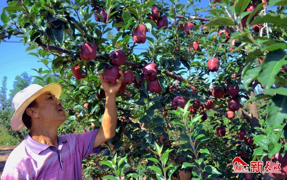 9月3日,记者在该镇龙凤村果园看到,一个个色泽红润、脆甜饱满的苹果压弯了枝头,空气中散发着诱人的清香,果农脸上洋溢着丰收的喜悦,正在采摘“幸福果”。