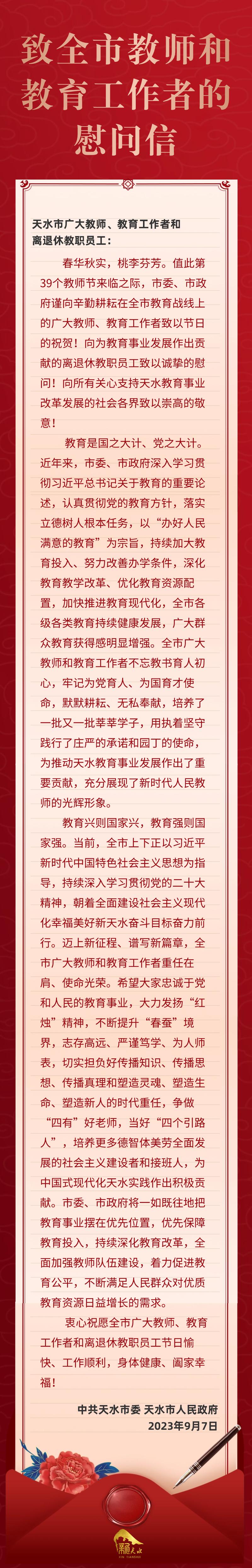 微海报 | 天水市委市政府致全市教师和教育工作者的慰问信