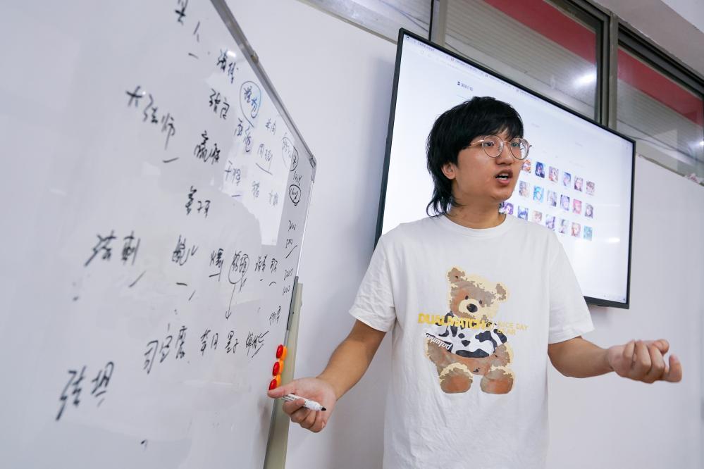 在金陵科技学院动漫学院,特聘教练钱舟在为学院电竞战队的队员讲解游戏角色信息。新华社记者 李博 摄