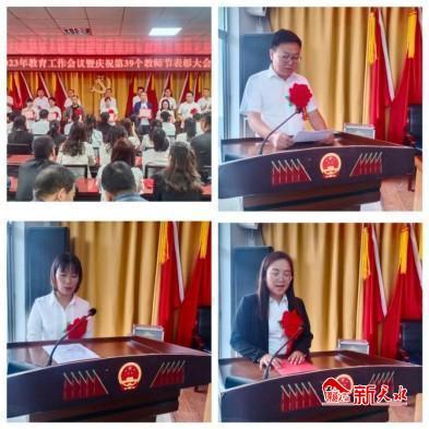 新天水讯 9月7日,秦安县刘坪镇隆重召开2023年教育工作暨庆祝第三十九个教师节表彰大会,优秀教师代表作交流发言。