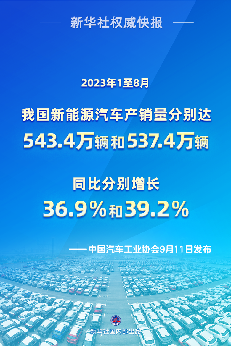 1至8月我国新能源汽车产销量同比分别增长36.9%和39.2%