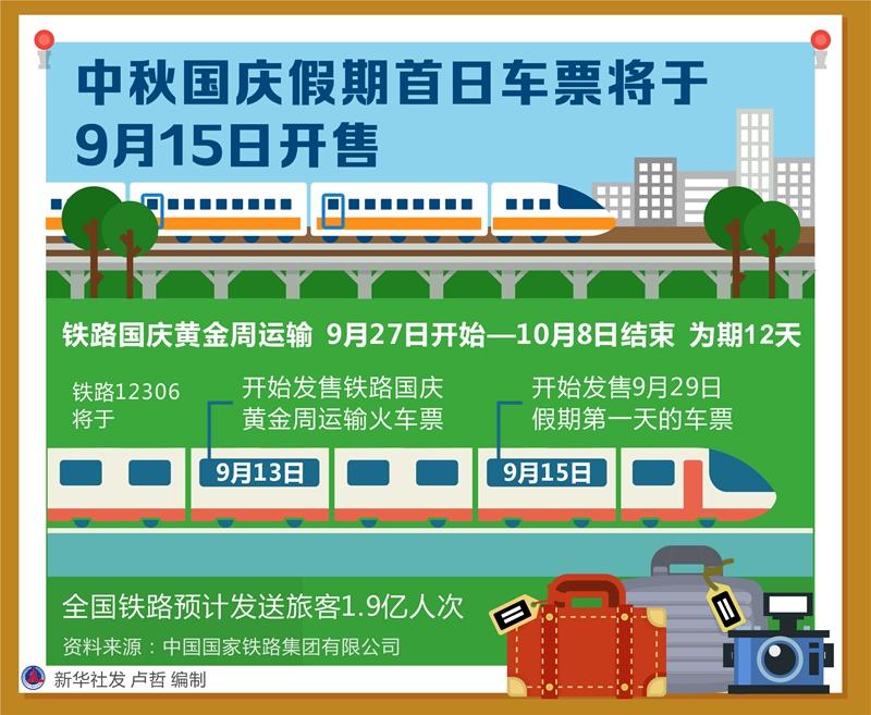 【网络中国节·中秋】中秋国庆假期首日车票将于9月15日开售