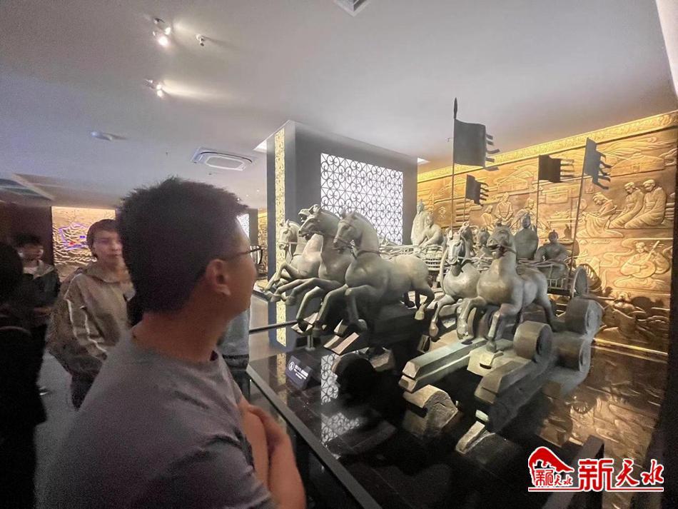 马家塬车舆博物馆展厅,大家从陈列出土的文物、文献资料中,深切感受到2000多年前我国古代高超的车辆制造技术和车舆文化底蕴,古代张家川县人民生产、生活场景。镇机关干部王永华感慨说道,一辆辆精美绝伦的马车、一件件珍贵的文物,既是历史文化的遗存,又闪耀着秦人与甘肃土著相融文化的灿烂光辉,让我十分震撼,很佩服先人们的创造精神、工匠精神。