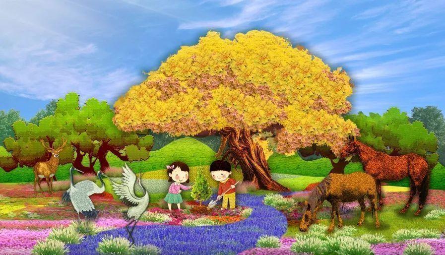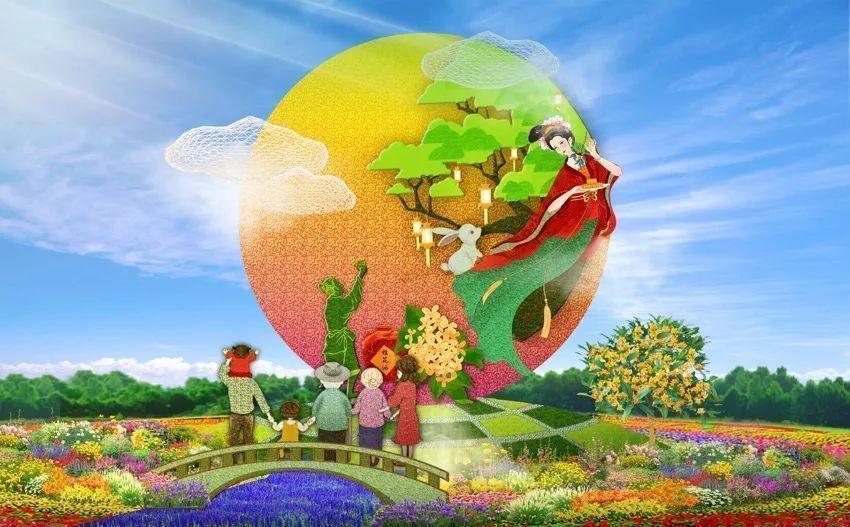 东单西北角“和谐共生”花坛 效果图
