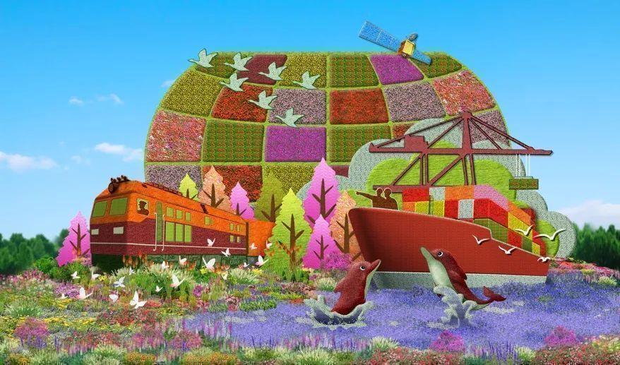 西单东南角的“幸福之路”花坛以中欧班列、货轮以及海豚为主景,寓意共同把“一带一路”这条造福世界的幸福之路铺的更宽更远。花坛顶高9米。