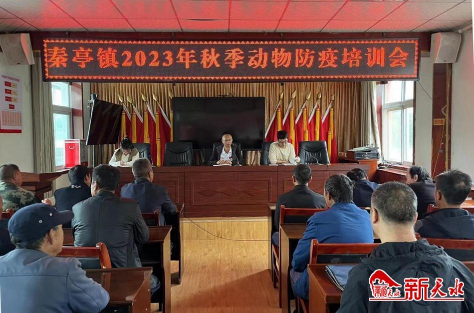 新天水讯 9月19日,清水县秦亭镇组织各村防疫员、养殖大户共计40余人,召开2023年秋季动物防疫培训会。扎实做好全镇秋冬季动物疫病防控工作,确保不发生区域性重大动物疫情,维护公共卫生安全,促进全镇畜牧业健康发展