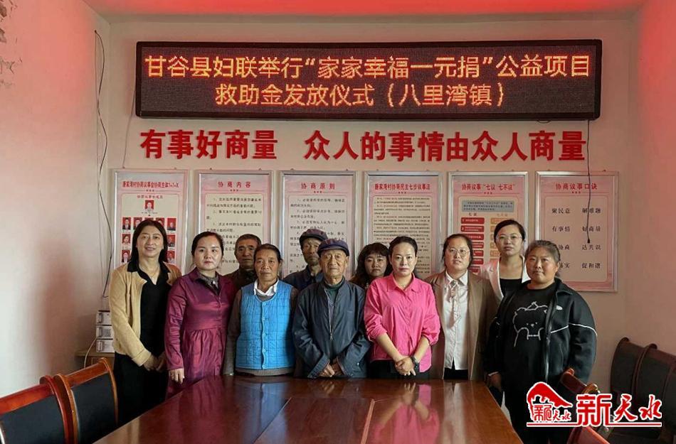 新天水讯 9月20日,甘谷县妇联走进八里湾镇举行“家家幸福一元捐”公益资金发放仪式。