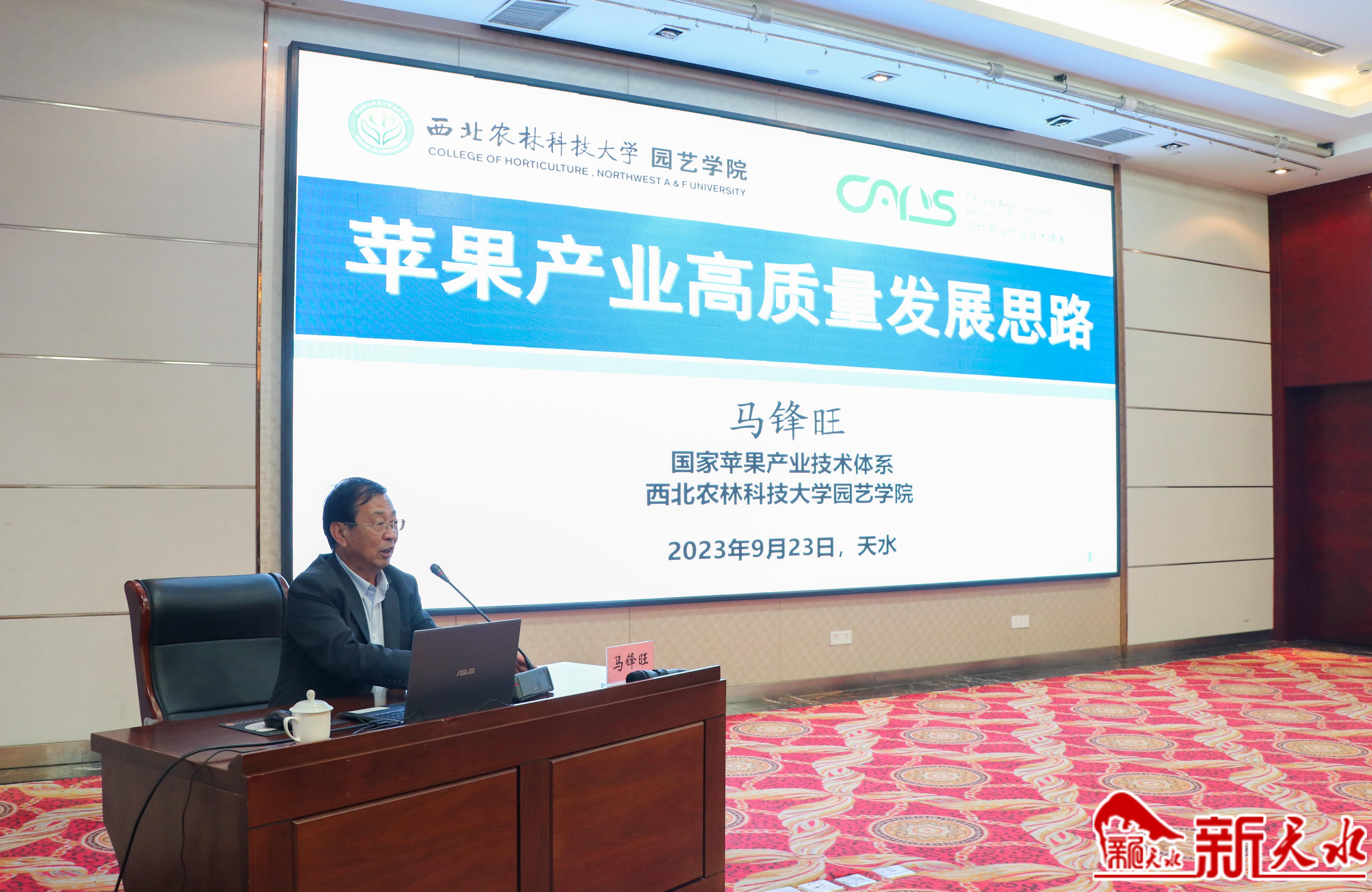 新天水讯【记者马哲】“醉美花牛,味你而来”。9月23日,正值花牛苹果成熟上市之际,我市在麦积区举办天水花牛苹果产业发展讲座,邀请国家苹果产业技术体系首席科学家、西北农林科技大学教授、博士生导师马锋旺教授,中果协龙头企业联盟执行秘书长、上海市果品行业协会执行会长、万果会·万果联创始人朱勇立,围绕当前国内外苹果产业发展趋势及花牛苹果产业发展难点问题、苹果营销物流体系建设作专题讲解。