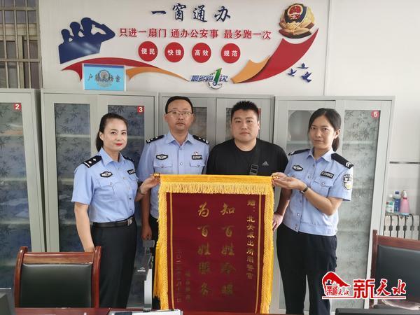 新天水讯【记者张彬霞】9月19日上午,秦安县兴国镇的杨先生专程从上海赶来,拿着一面印有“知百姓冷暖为百姓服务”的锦旗来到秦安县公安局北关派出所,为其帮助解决困难的户籍民警表示致谢。