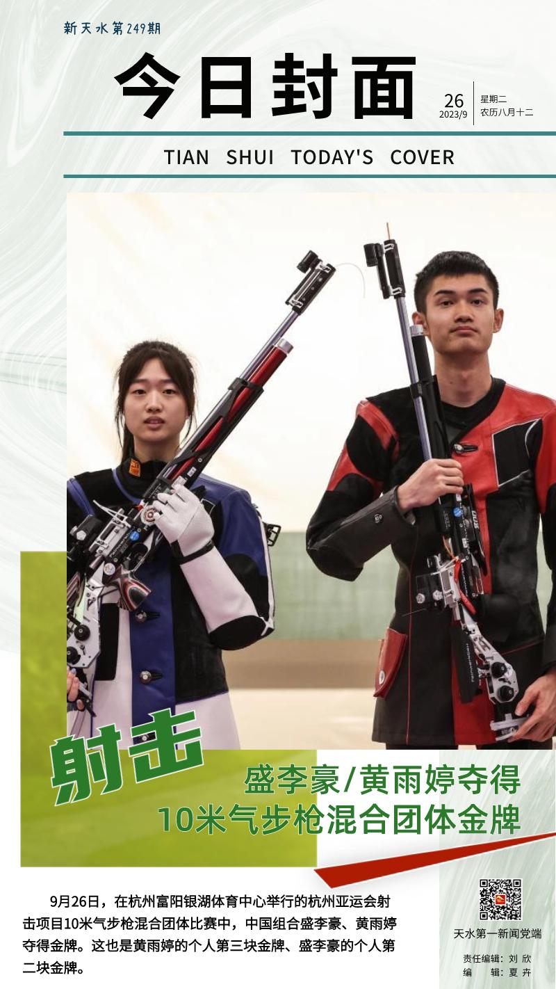 9月26日,在杭州富阳银湖体育中心举行的杭州亚运会射击项目10米气步枪混合团体比赛中,中国组合盛李豪、黄雨婷夺得金牌。这也是黄雨婷的个人第三块金牌、盛李豪的个人第二块金牌。